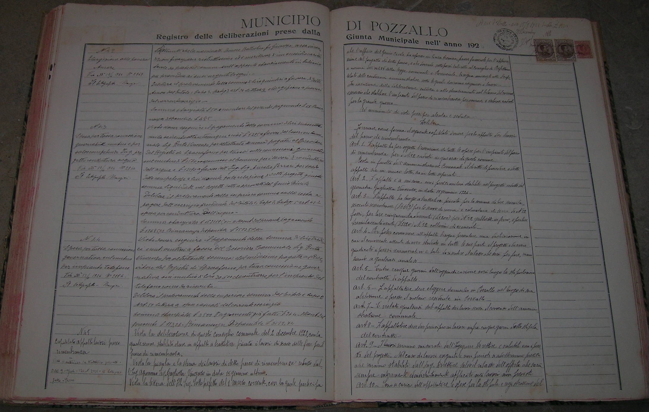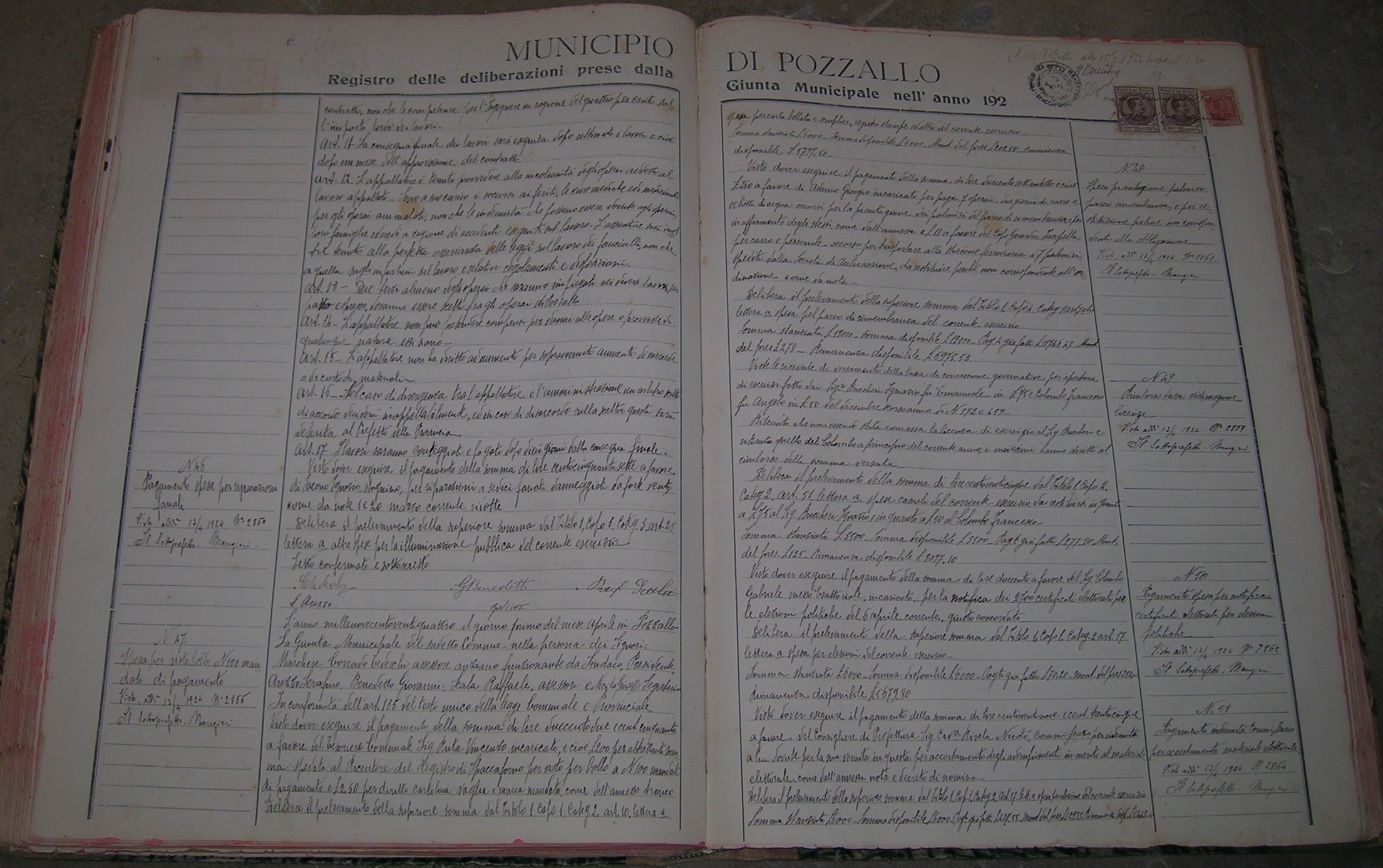 Spesa per registri Stato Civile pel 1924. |