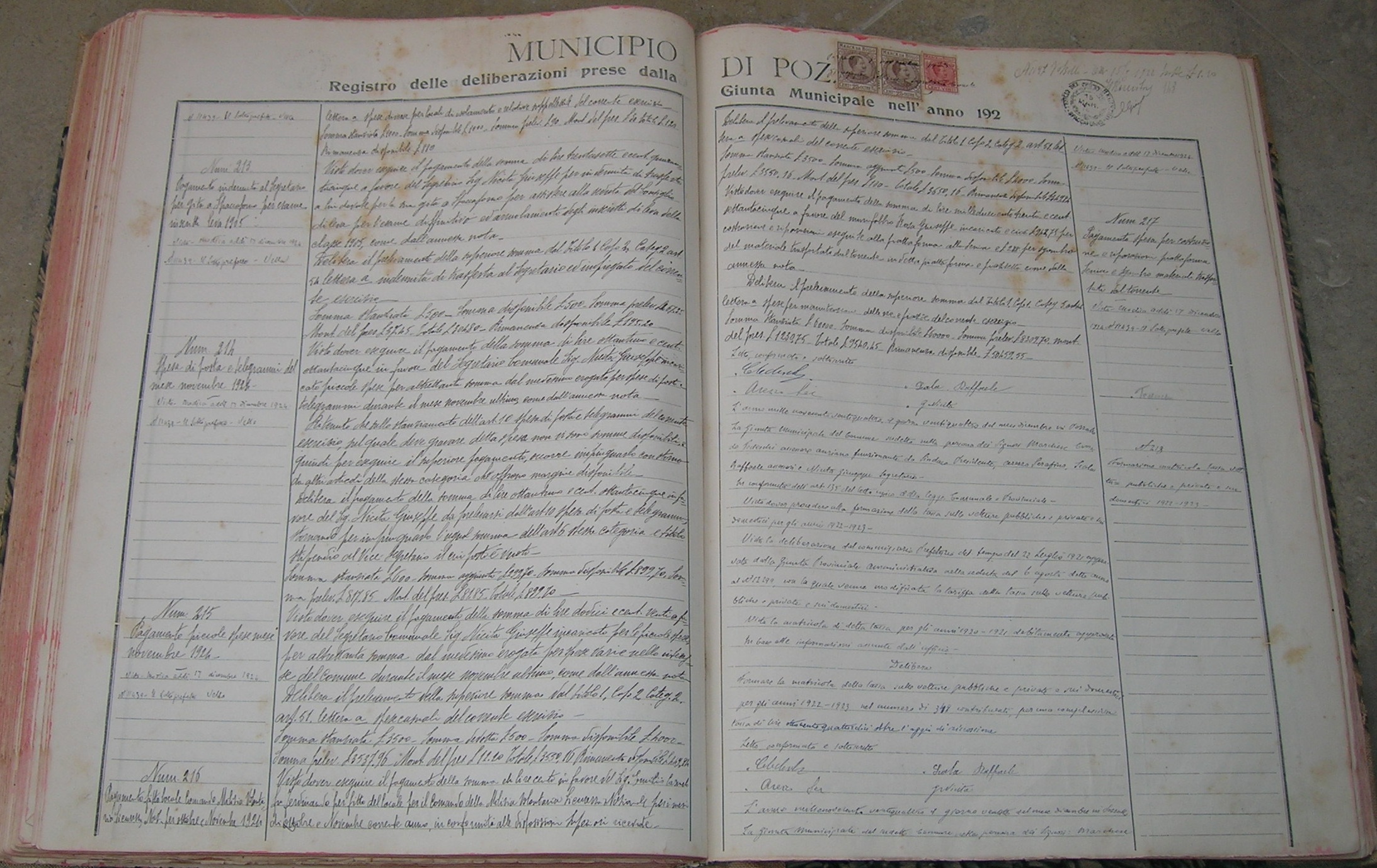 Pagamento posta e telegrammi pel mese ottobre 1924. |